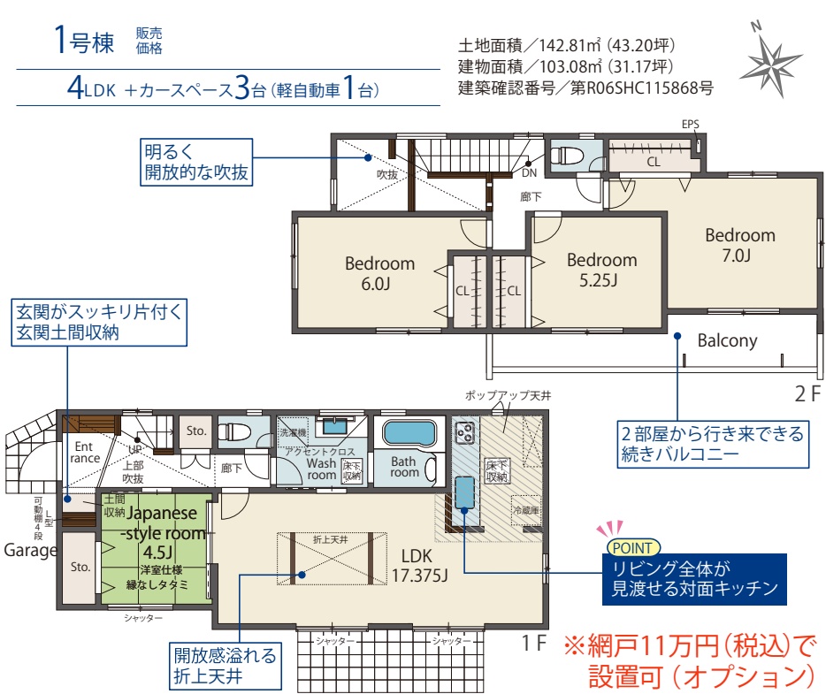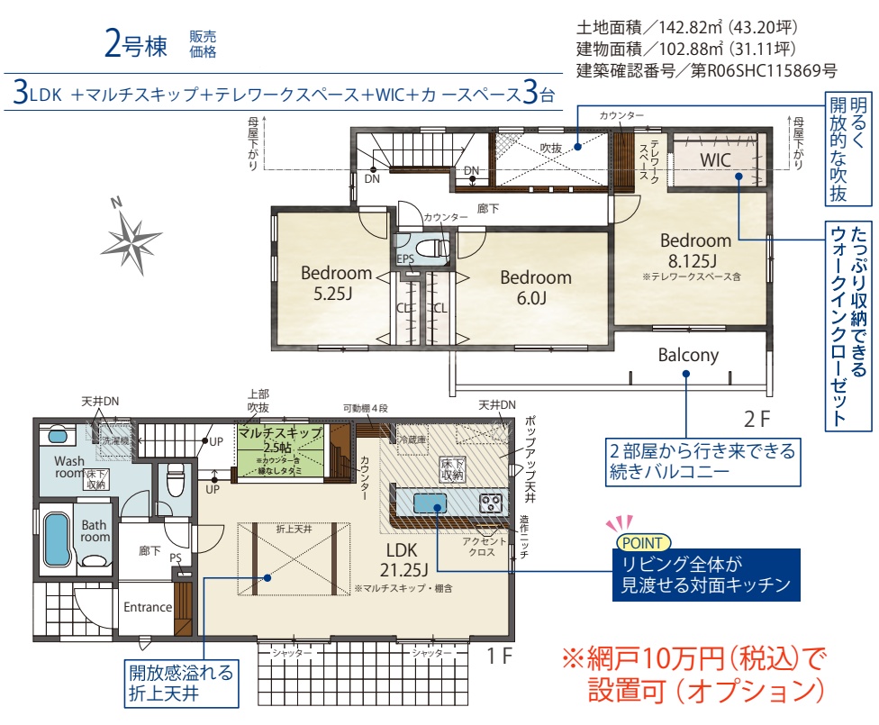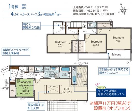 | 構造 | 木造 2階建て | 建物面積 | 102.88㎡・103.08㎡ |