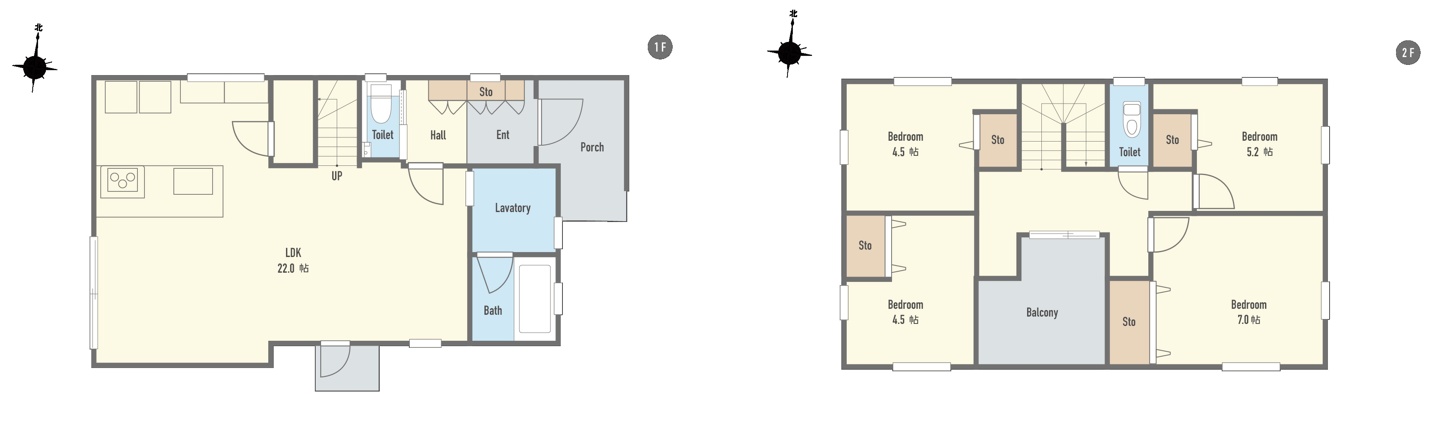 | 構造 | 木造 2階建 | 建物面積 | 105.57㎡・108.01㎡(31.93坪・32.67坪) |