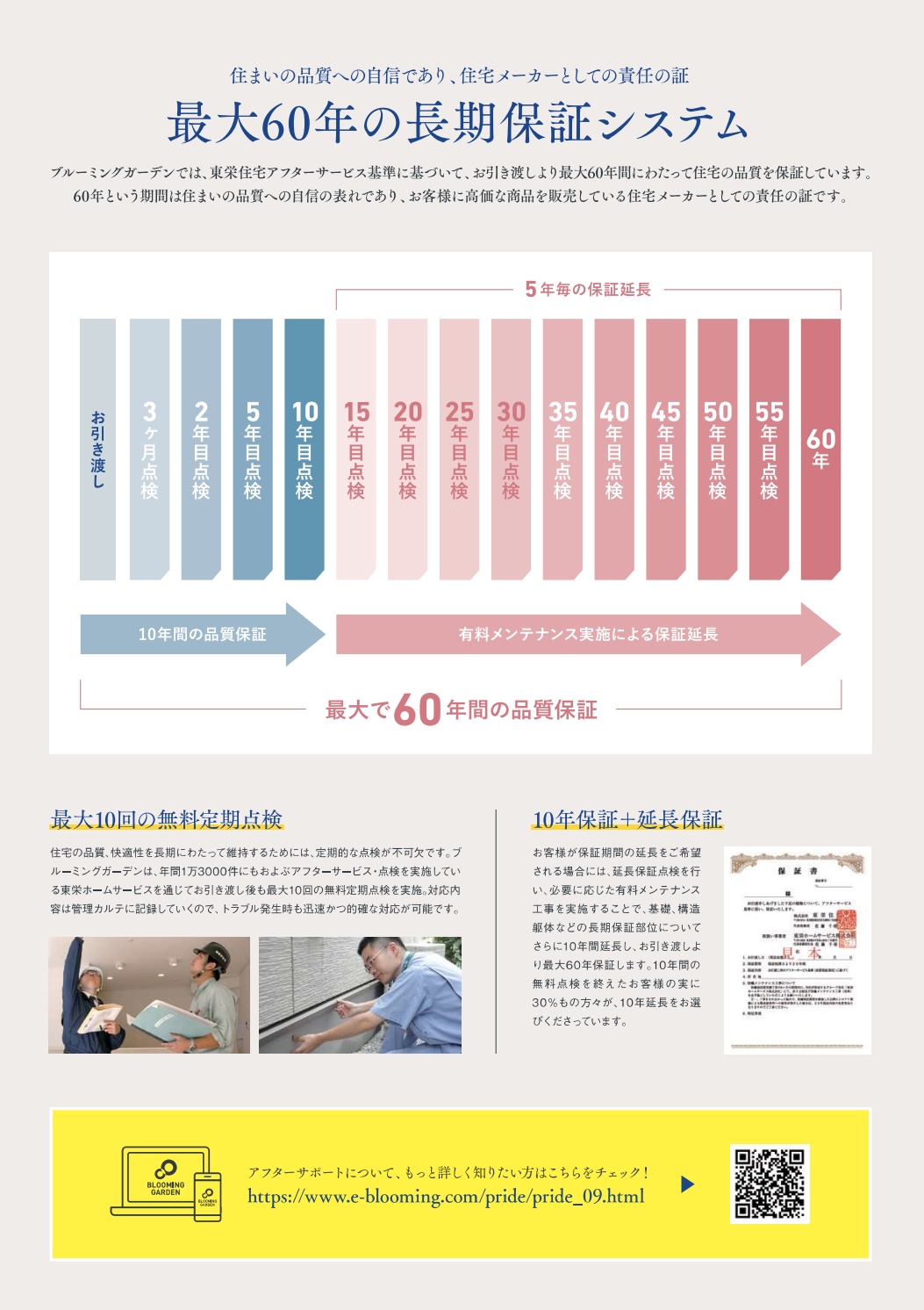 ・3ヶ月・2年・5年・10年の無料点検でアフターサービスをサポート!最大30年保証