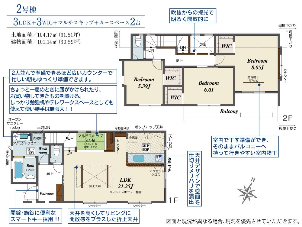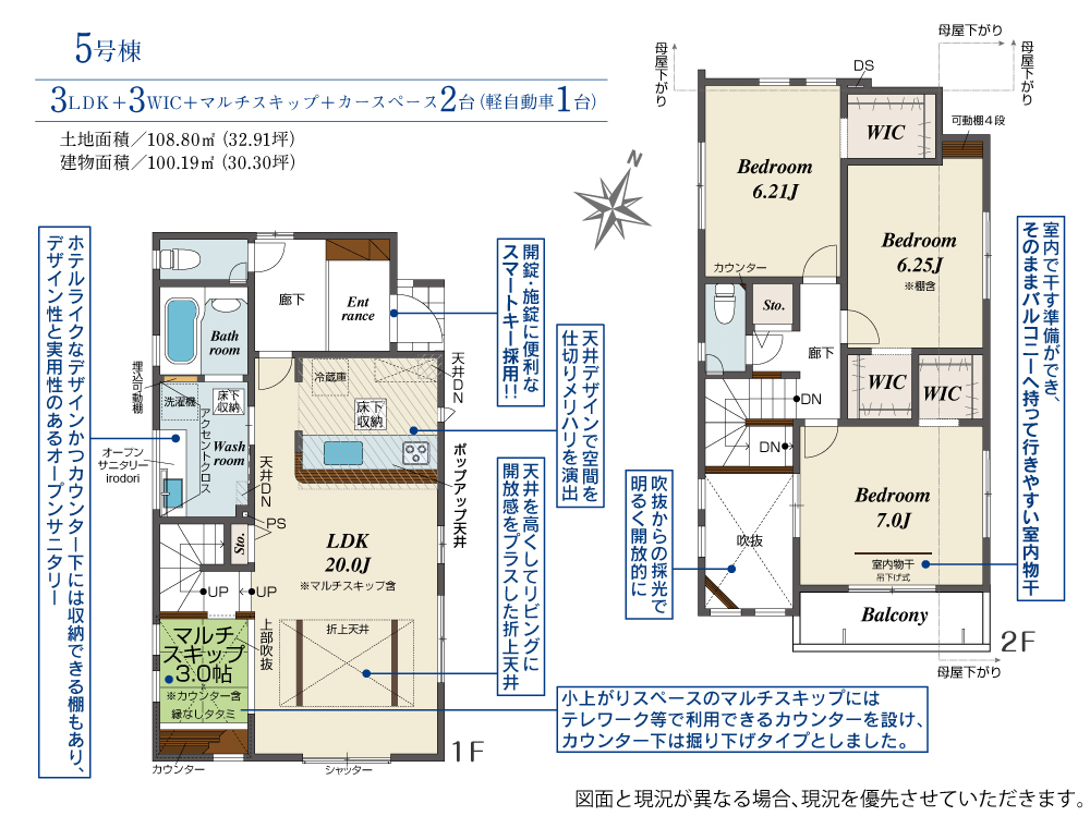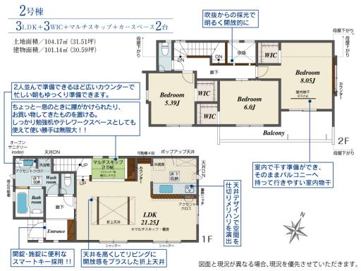 | 構造 | 木造 2階建 | 建物面積 | 95.78㎡~102.14㎡(28.97坪~30.89坪) |
