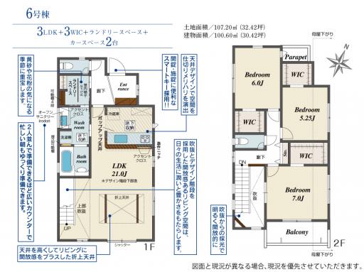 | 構造 | 木造 2階建 | 建物面積 | 95.78㎡~102.14㎡(28.97坪~30.89坪) |